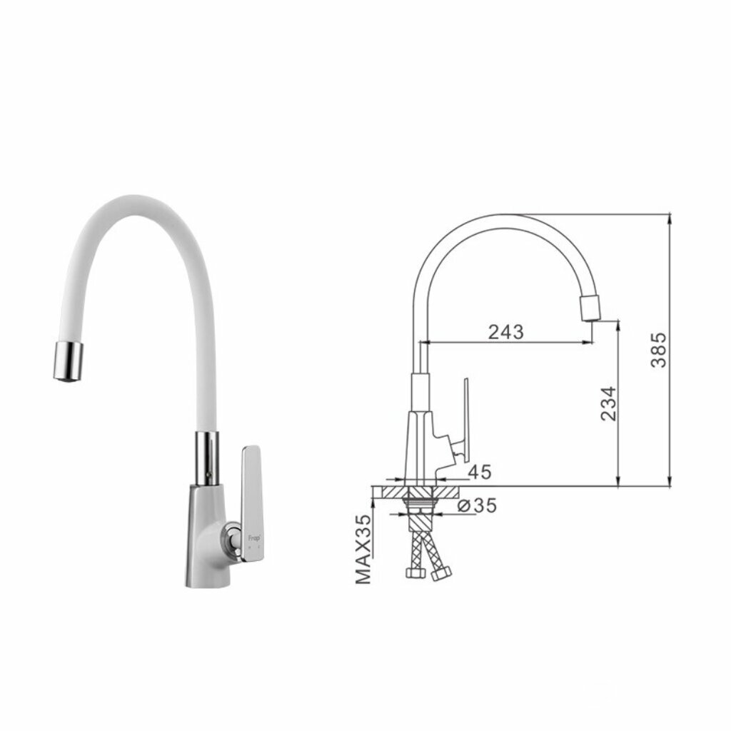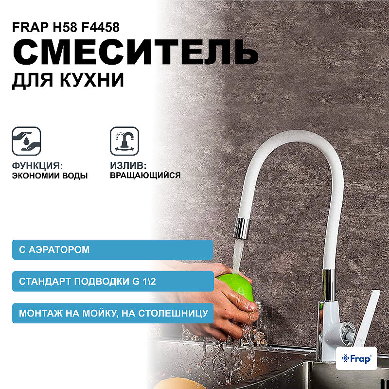 FRAP F4458, Смеситель для кухни (покрытие белый/хром, латунь, картридж 35 mm, крепление гайка)