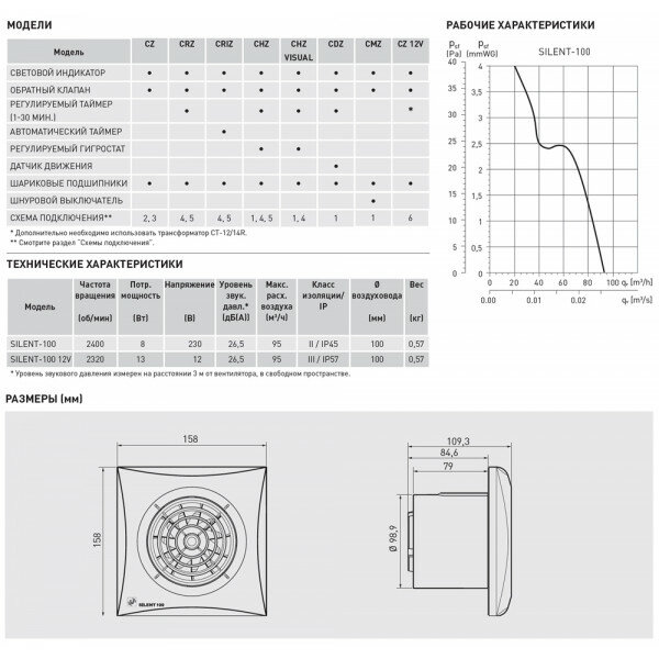 Вытяжной вентилятор SILENT-100 CZ 12V .