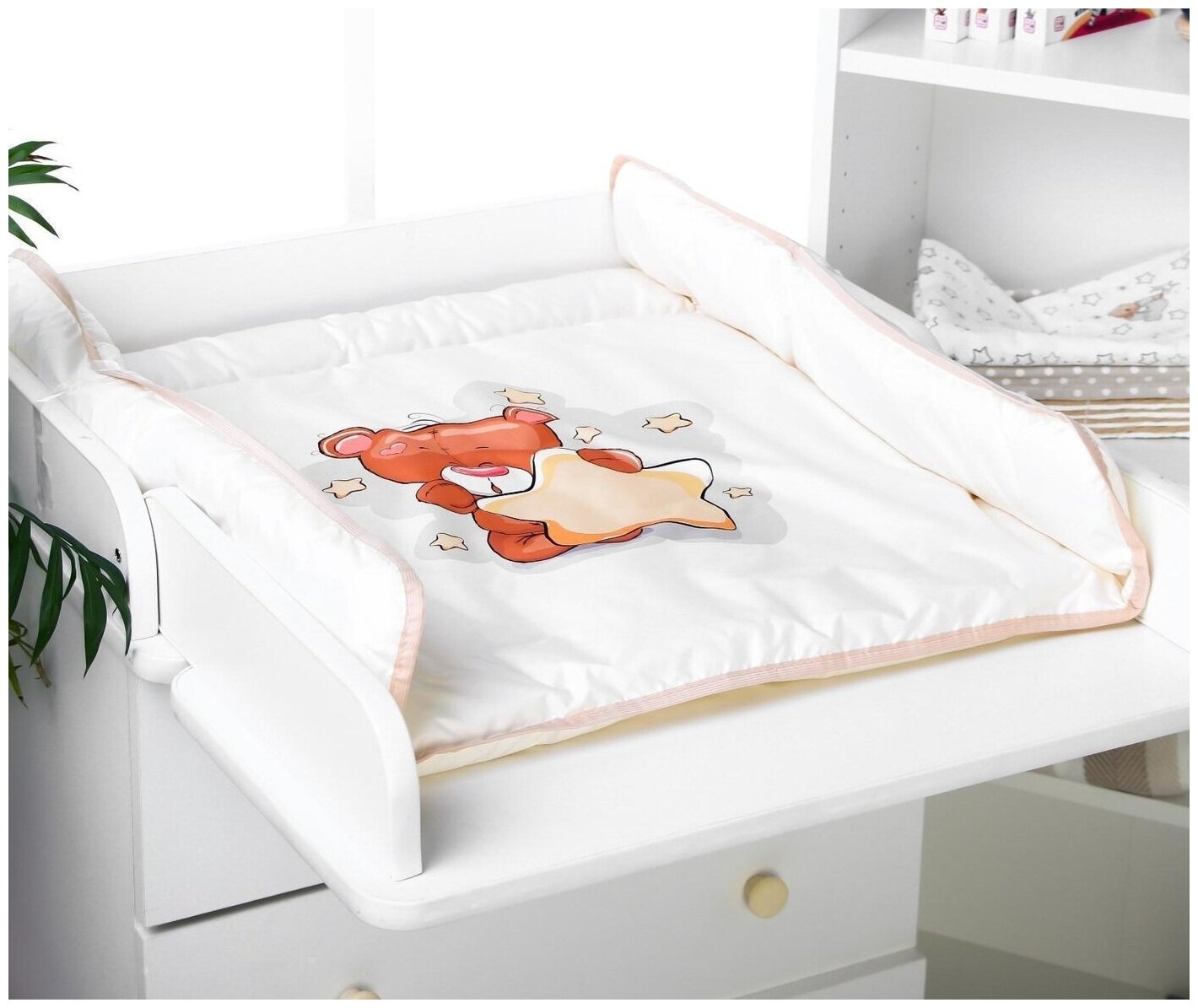 Матрасик для пеленального столика/комода Люкс 72х82 см., «Мишка со звездой»