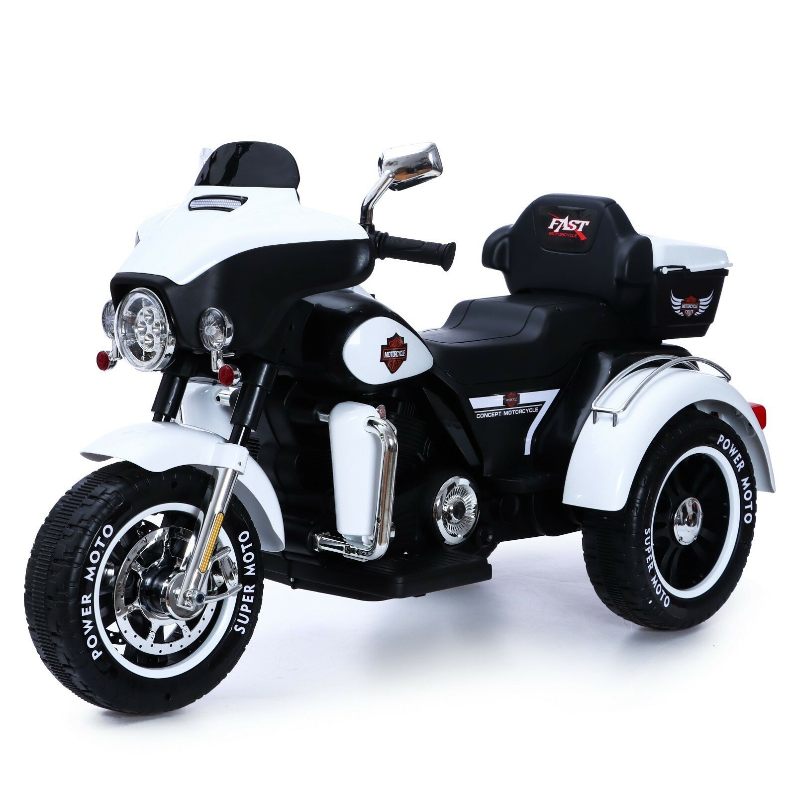 Электромотоцикл «Трайк», 2-х местный, 2 мотора, цвет чёрно-белый интересное:
