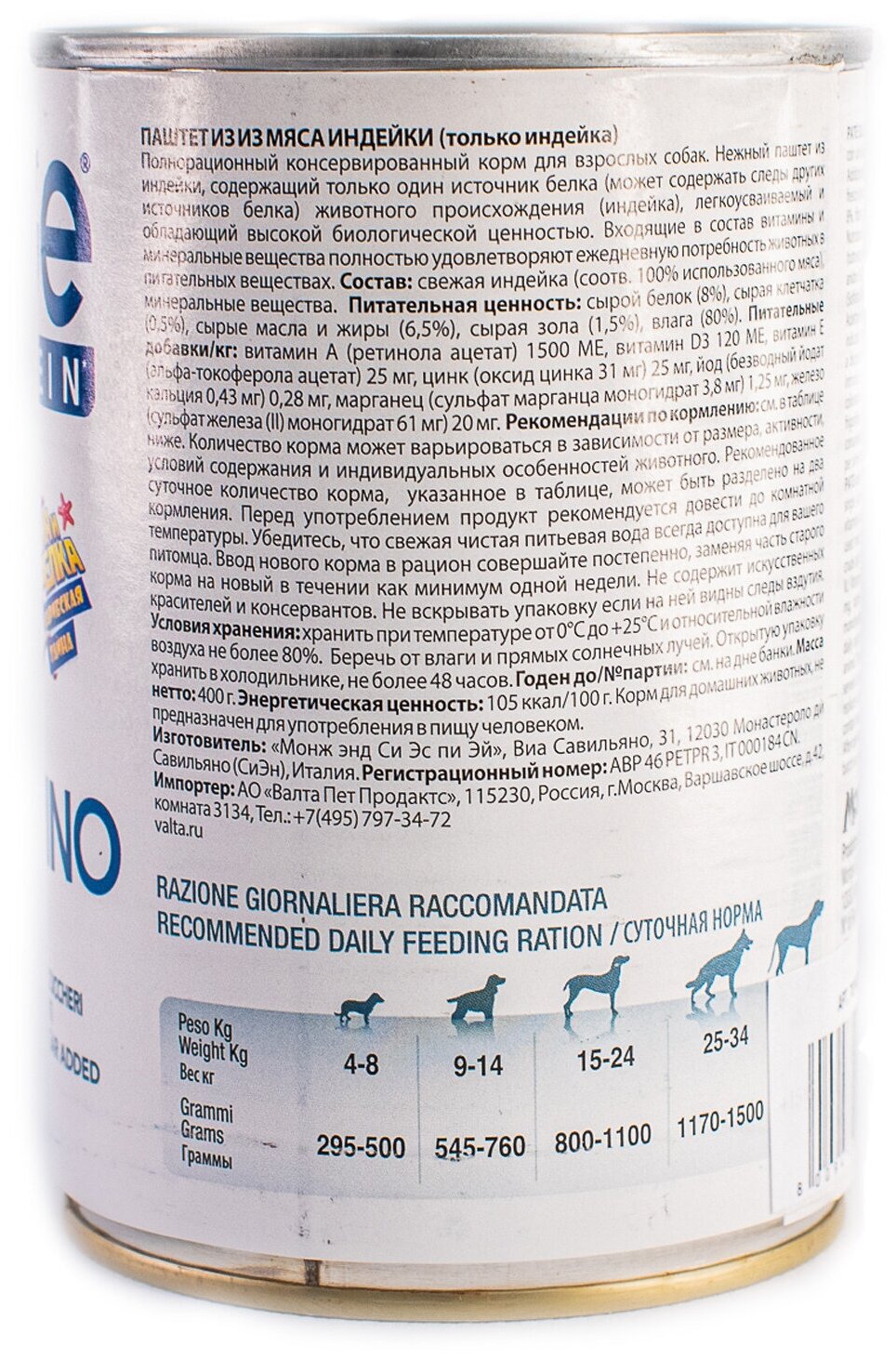 Корм для собак MONGE Dog Monoproteico Solo паштет из индейки конс. 400г