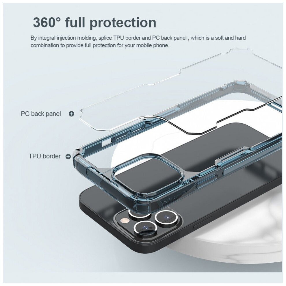 Nillkin Чехол Nillkin Nature Pro для iPhone 14 Pro, прозрачный/синяя рамка