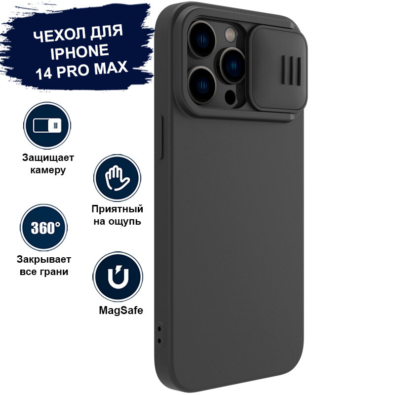 Nillkin для iPhone 14 Pro Max чехол CamShield Silky Magnetic Silicone Elegant Black, шт