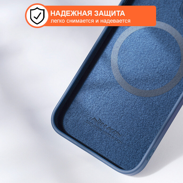 Чехол для iPhone 14 Pro Max Nillkin MagSafe синий, силиконовый, противоударный с усиленными углами и защитой камеры