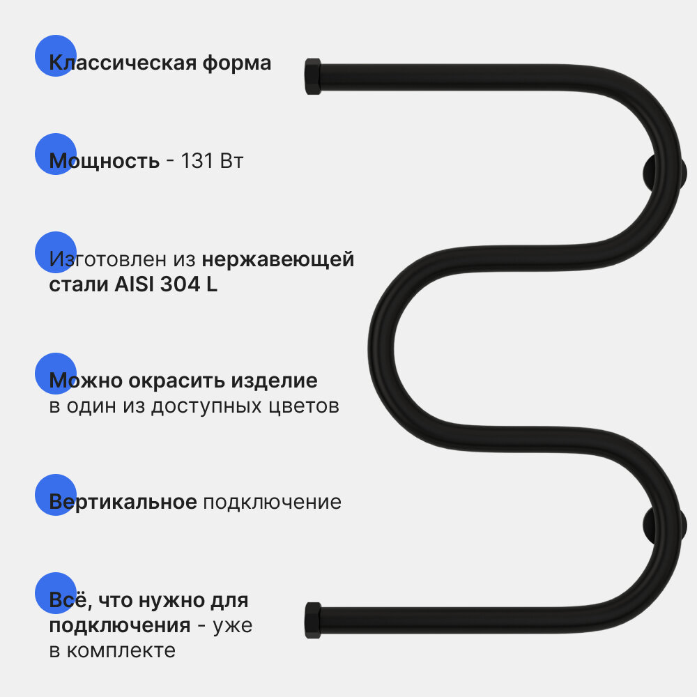 Полотенцесушитель Электрический Тругор Пэк сп 5 П 60х50 черный ВГП