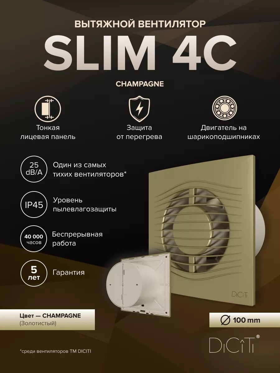 СохранитьВентилятор вытяжной DiCiTi SLIM 4C, champagne 7.8 Вт интересное: