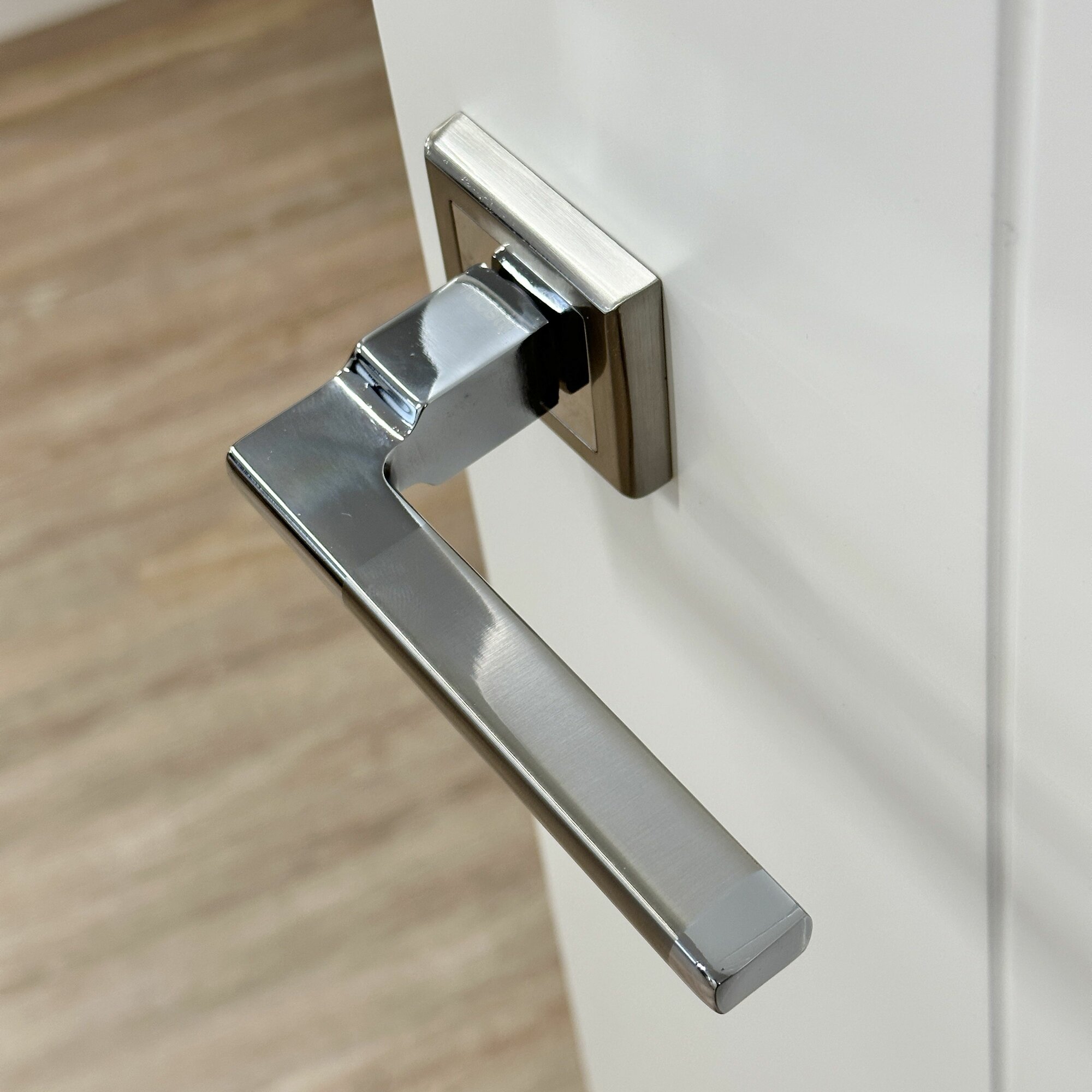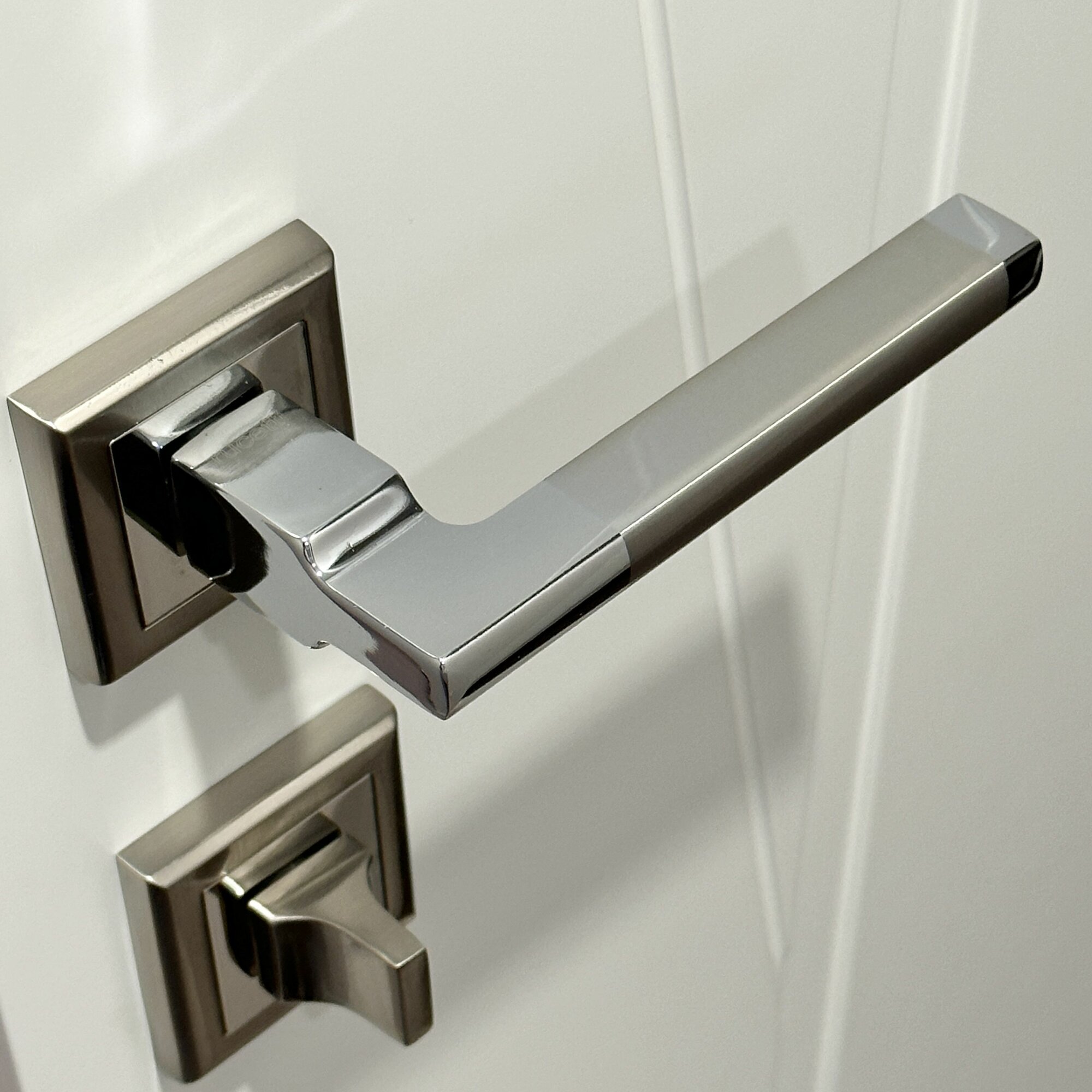 Дверная ручка на квадратной розетке RUCETTI RAP 17-S SN/CP белый никель/полированный хром