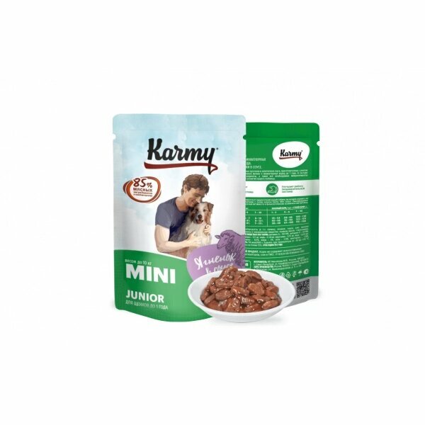 Karmy Mini Junior влажный корм для щенков мелких пород, ягненок в соусе, в паучах - 80 г х 12 шт