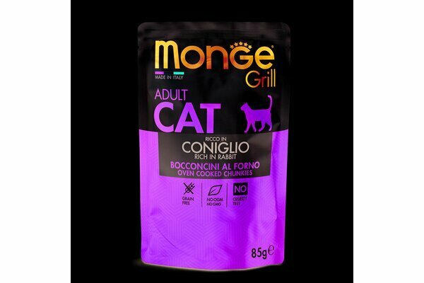 Влажный корм Monge Cat Grill для взрослых кошек, из кролика, паучи 85 г (28 штук в упаковке)