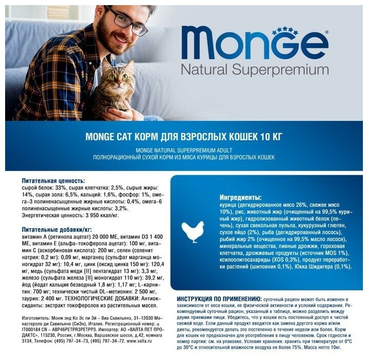 Сухой корм Monge Cat для для взрослых кошек, 10 кг. 1584876 интересное: