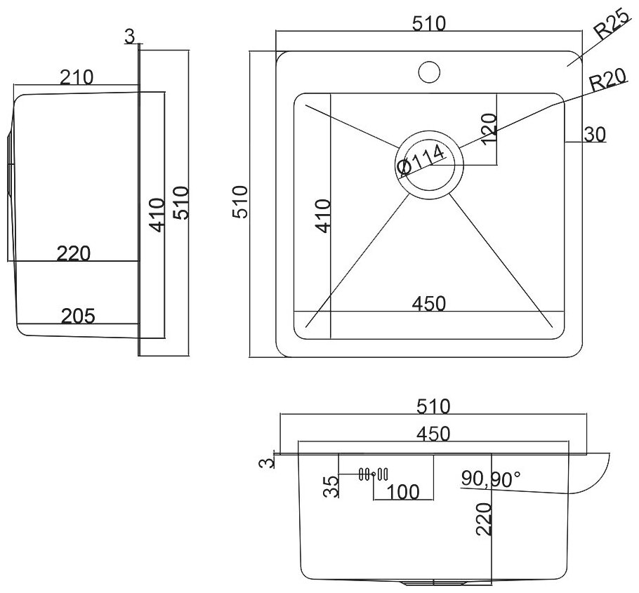 Мойка нержавеющая Zorg 510х510 мм HD 5151