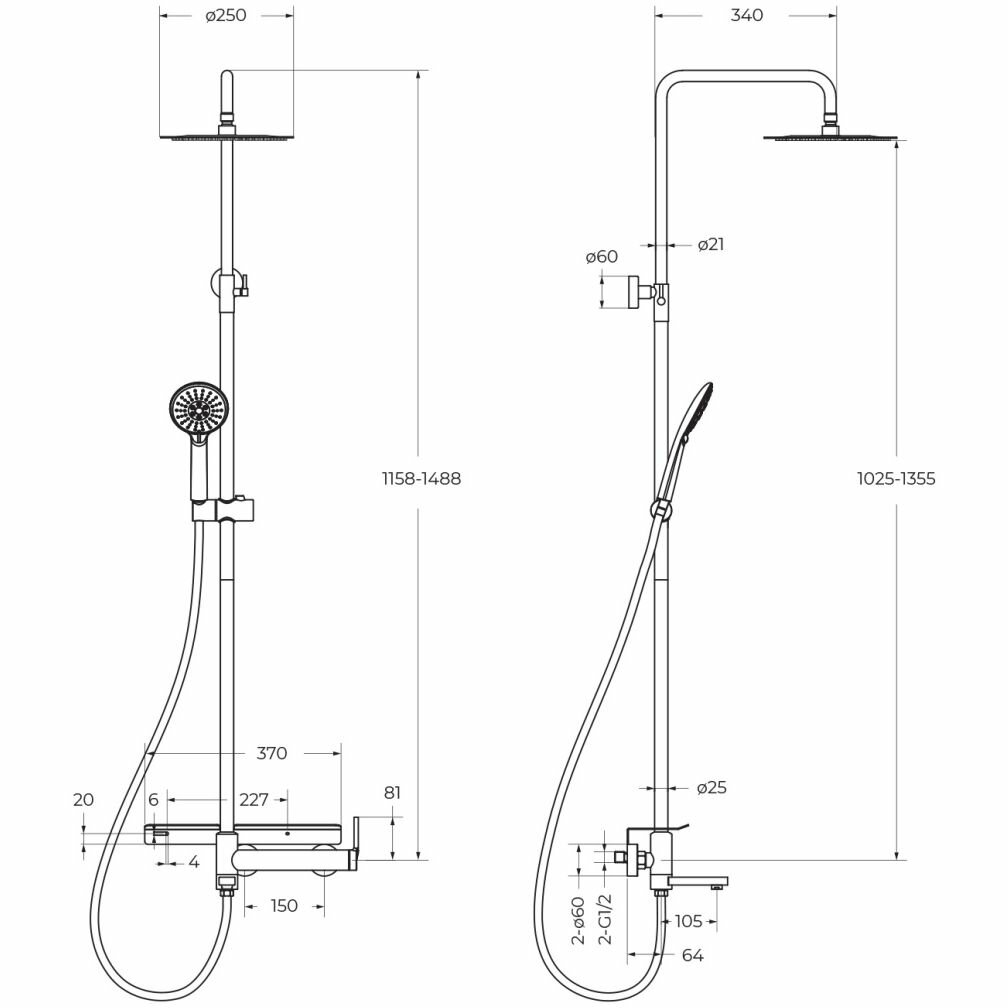 | Комплектация | верхний душ / держатель лейки / душевая стойка / излив для набора воды / лейка / полочка / шланг |