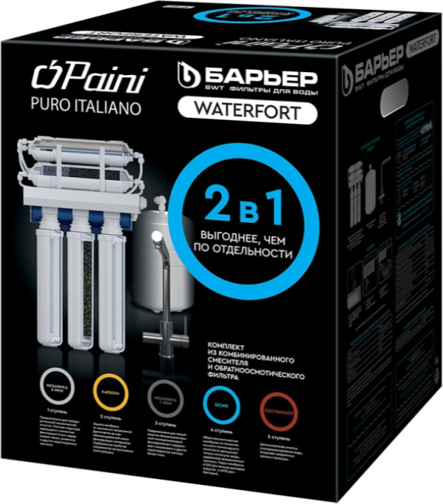 Система очистки воды с обратным осмосом БАРЬЕР WaterFort Осмо со смесителем Paini, Н261Р03