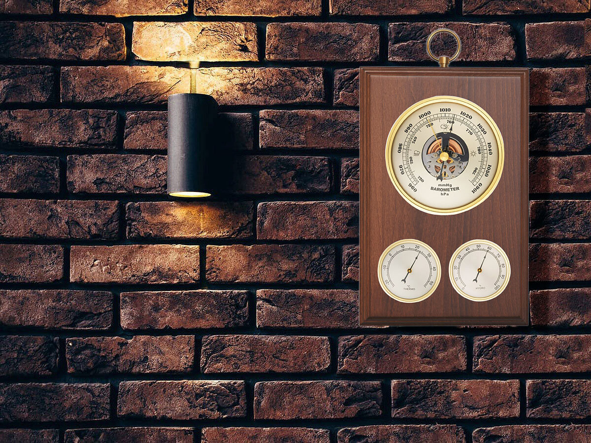 Купить Метеостанция Бриг БМ93301-ТГБ-М. Механическая бытовая метеостанция .Настенная ,красно-коричневая. Барометр анероид, ,термометр, гигрометр.
