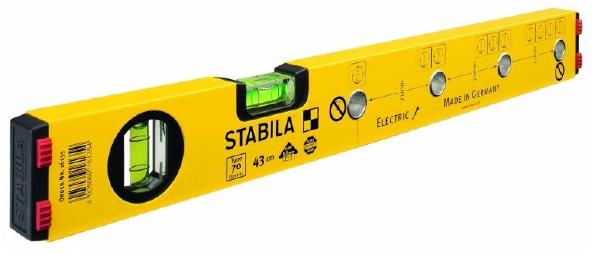 STABILA Уровень тип 70 Electric, 43см (1верт.,1гориз.,точн. 0,5мм/м) для электрика (арт. 16135)