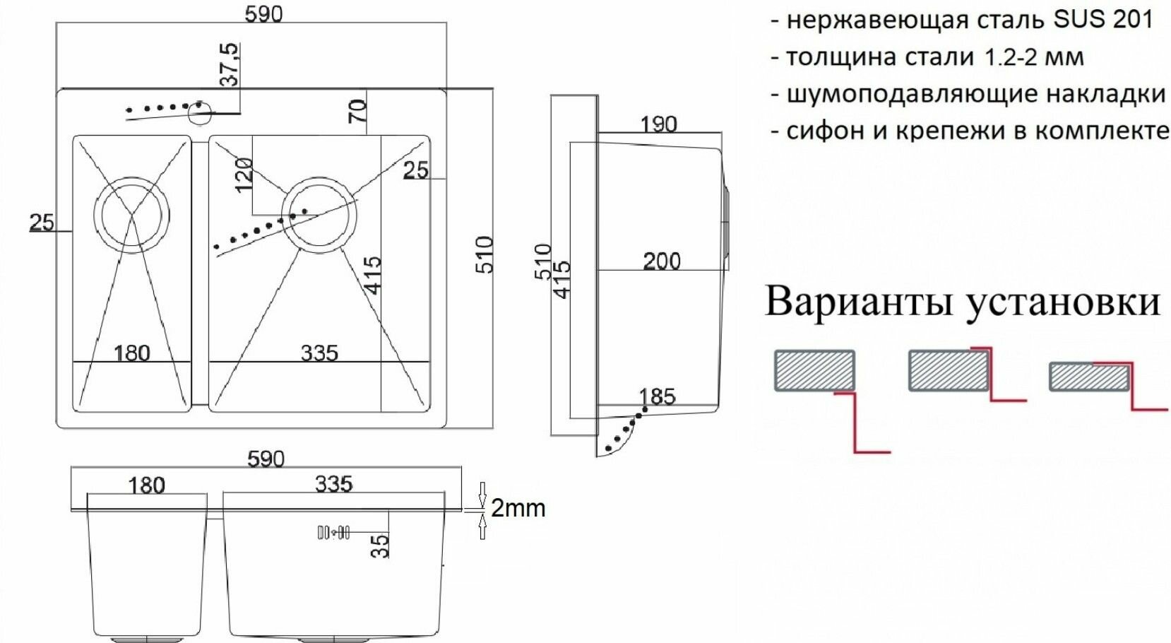 Мойка нержавеющая Zorg 590х510 мм ZL R 590-2-510 R интересное: