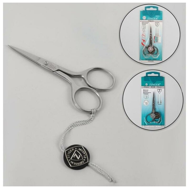 ZINGER Ножницы маникюрные, прямые, 9,5 см, цвет серебристый, B-105-S-SH