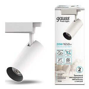 Светильник трековый Gauss, LED, 20 Вт, 1760 Лм, 4000K, 180-220 В, IP20, белый