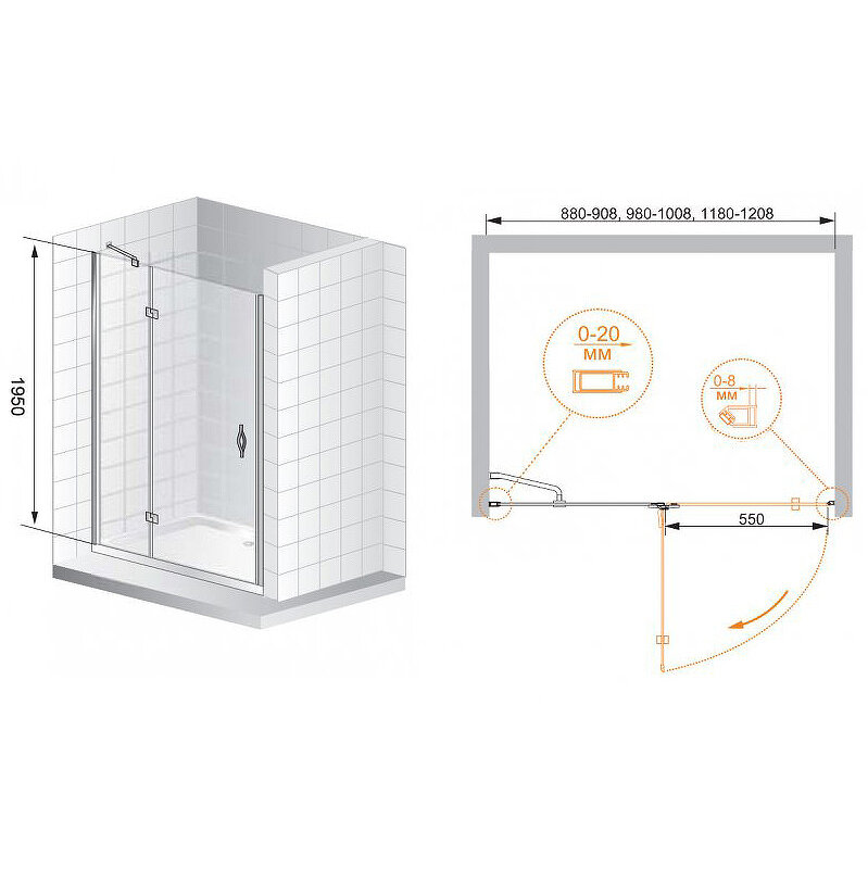 Душевая дверь Radaway Almatea DWJ 120 стекло прозрачное/профиль хром левая