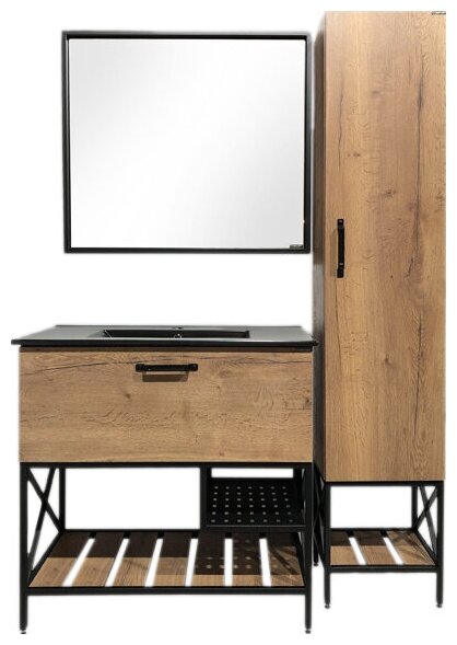Тумба-умывальник "Бредфорд-90" дуб темный с рак. COMFORTY 90E черная матовая
