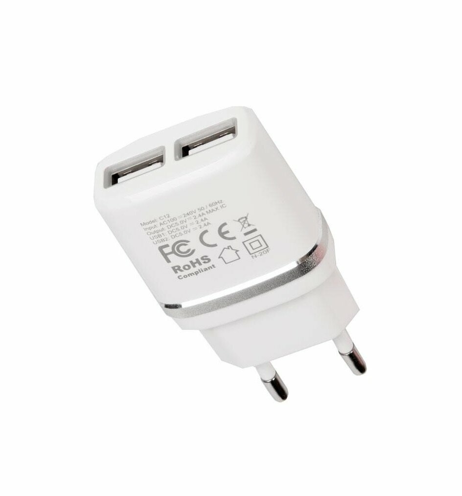 Hoco Зарядное устройство 12Вт, 2.4А, 2хUSB, C12, белый, коробка (757128), 6957531047759