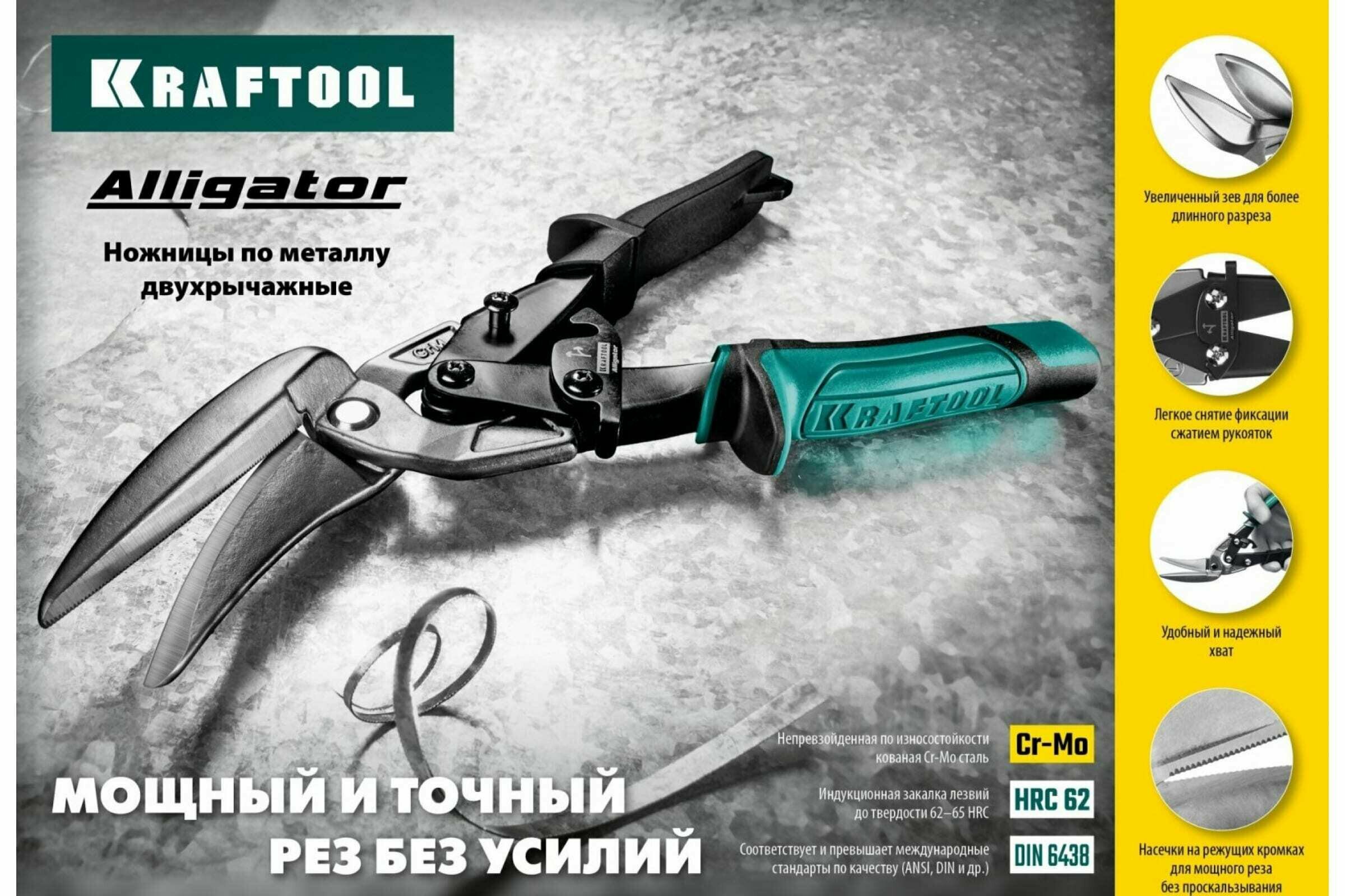 Правые усиленные ножницы по металлу KRAFTOOL Alligator