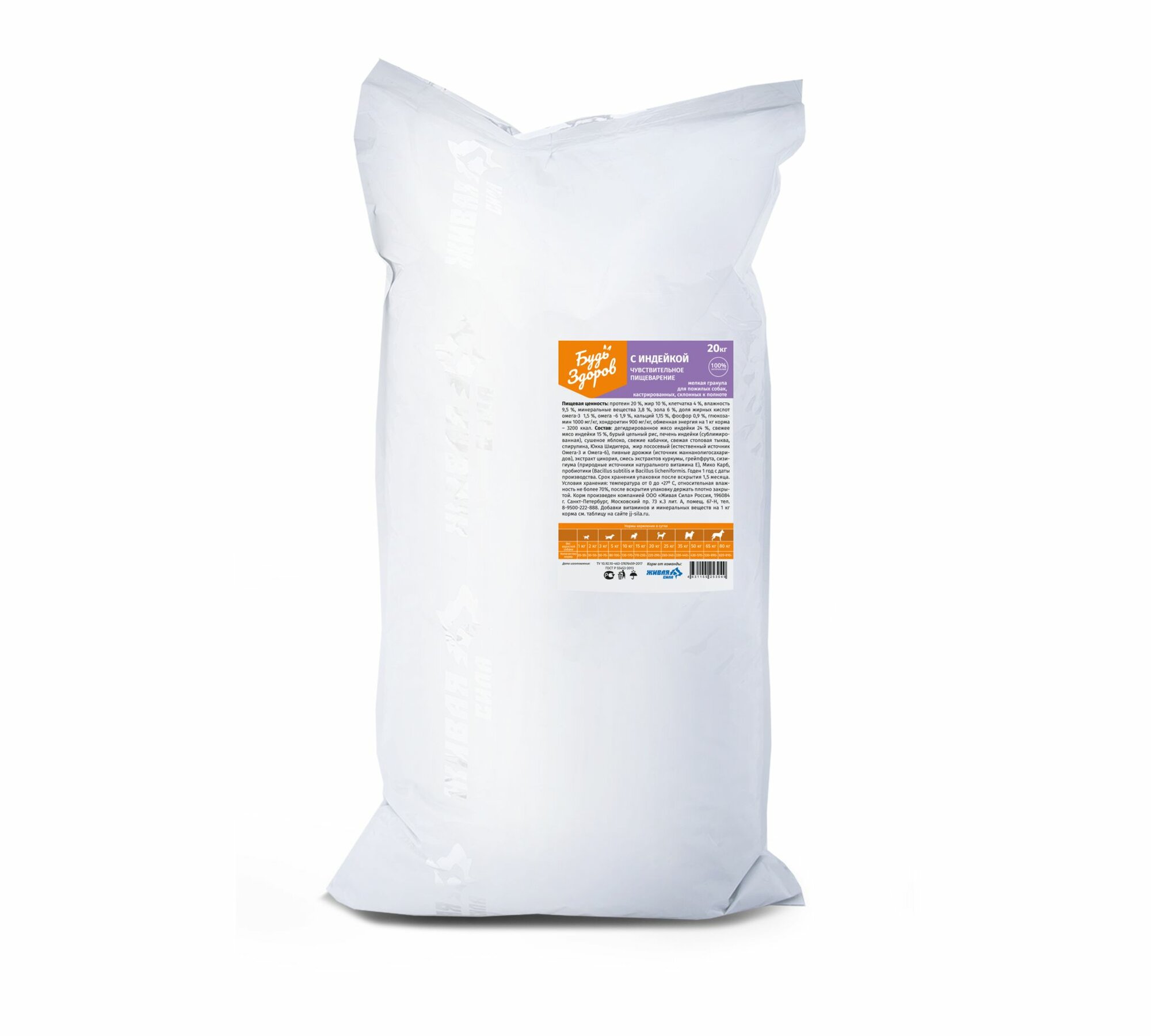 Купить Корм для собак Будь Здоров для пожилых, кастрированных, склонных к полноте. С индейкой мелкая гранула (20 кг)