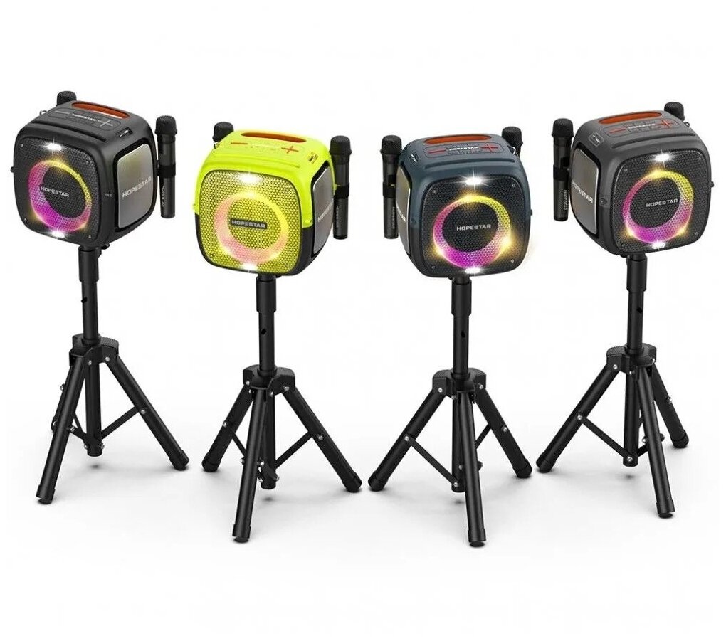 Колонка Hopestar Party One 80 Вт два беспроводными микрофона на штативе черная