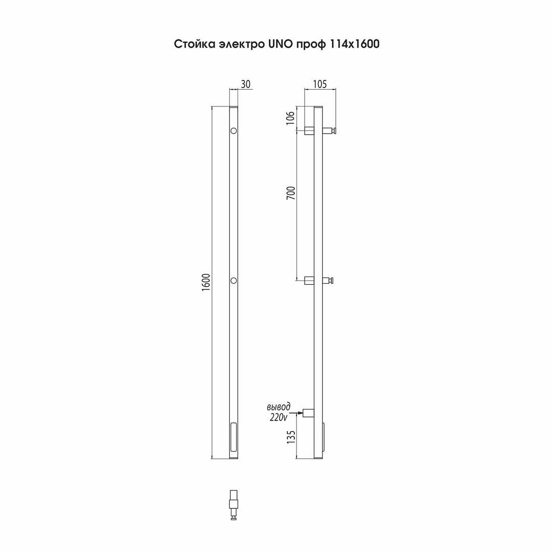 Полотенцесушитель электрический Terminus Стойка UNO проф 1600 хром из нержавеющей стали