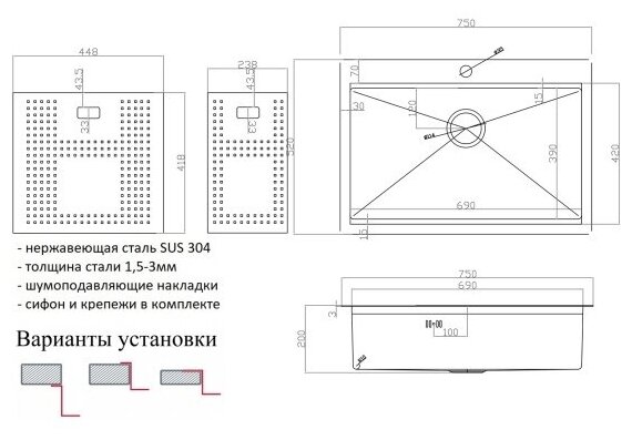 | Дополнительная информация | накладка в комплекте с мойкой |