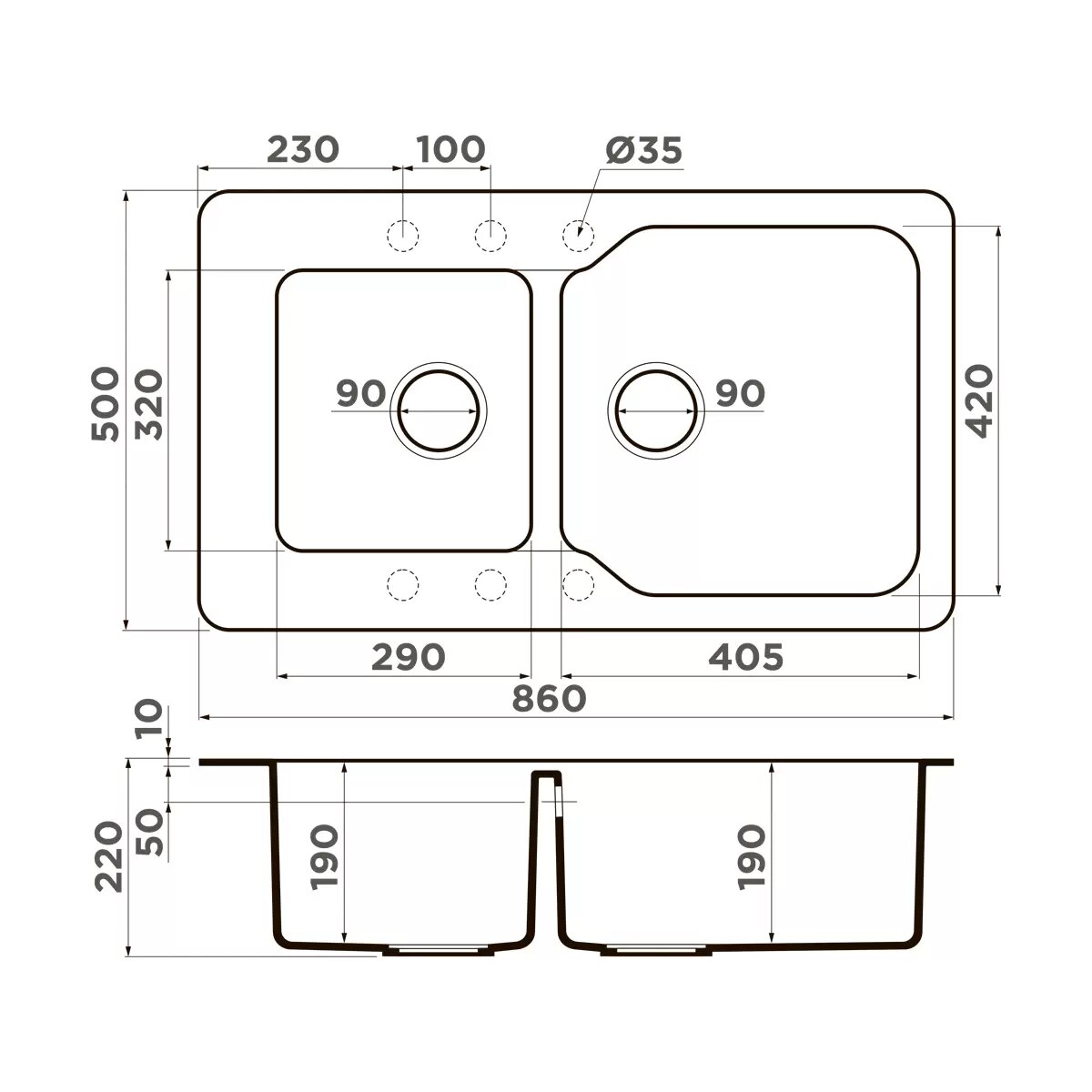 Мойка гранитная для кухни Omoikiri Maru 86-2-EV 860х500 мм 4993290 эверест
