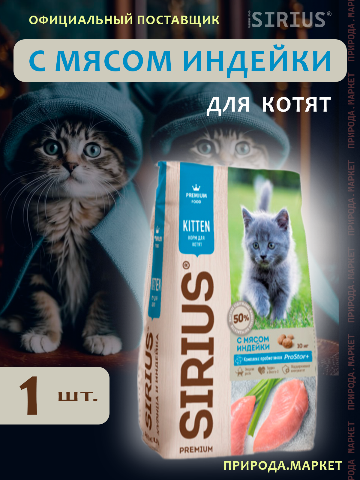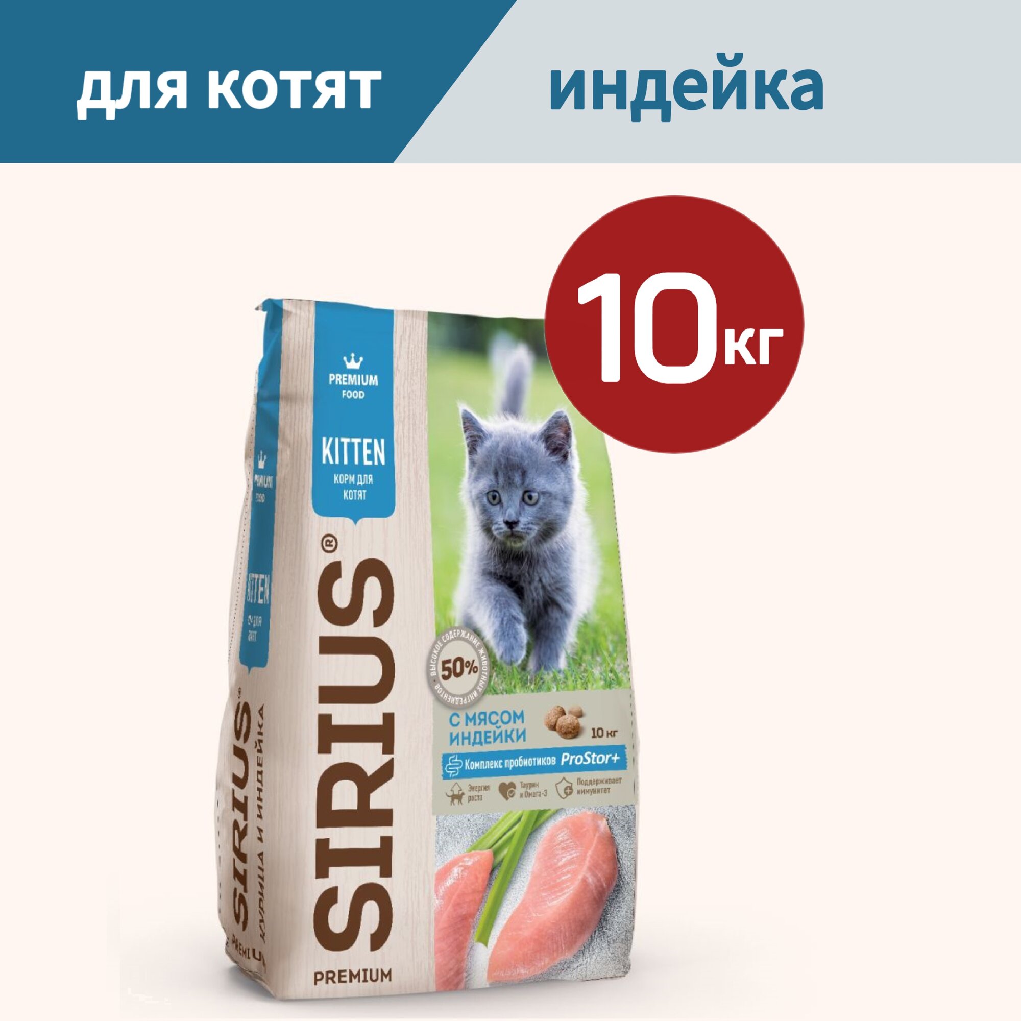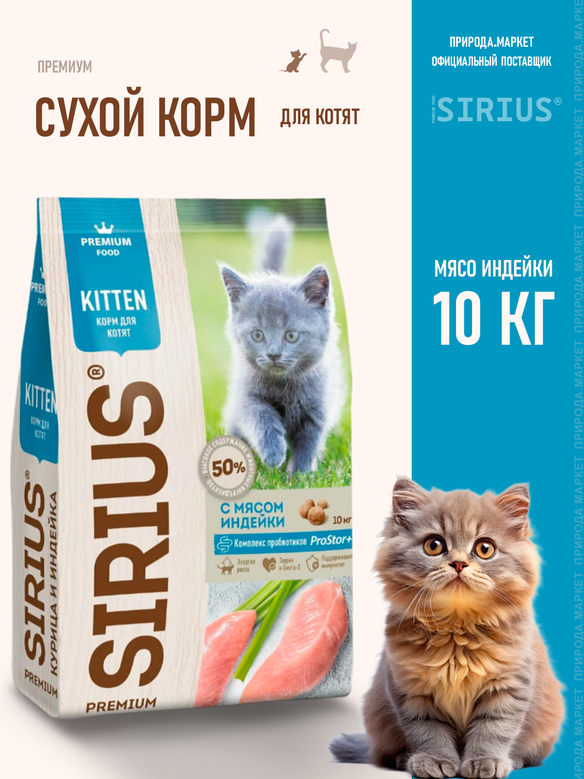 Сухой корм SIRIUS "С мясом индейки" для котят, 10кг