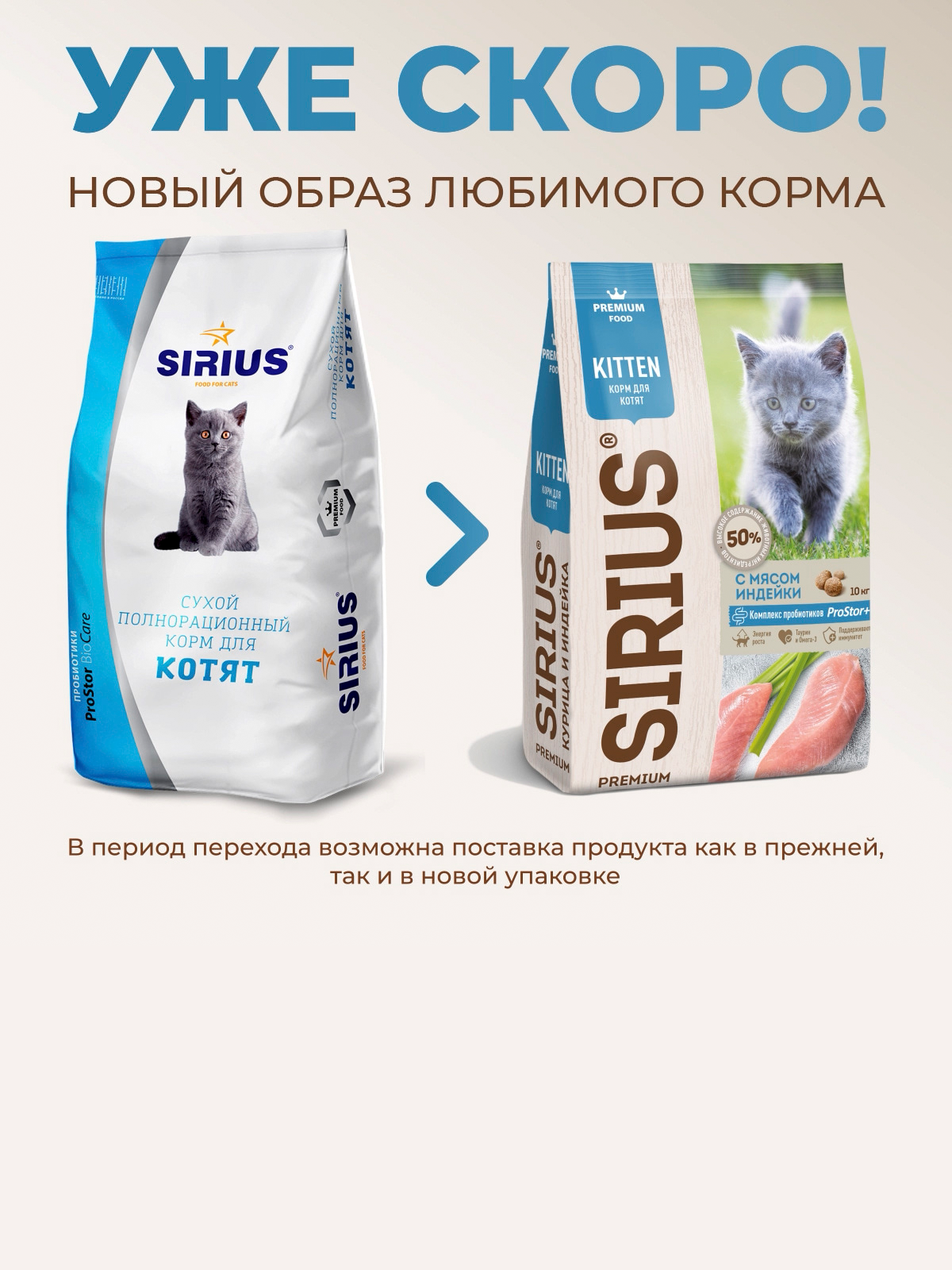 Сухой корм SIRIUS PREMIUM, Сириус для котят, с мясом индейки, 400 г