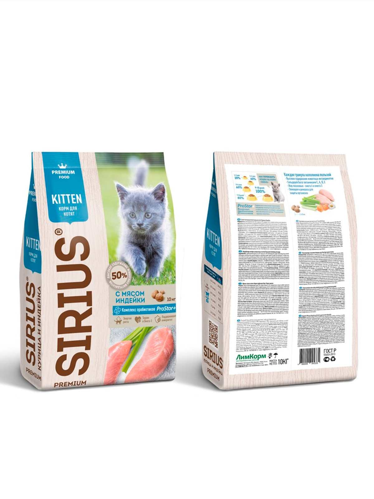 Сухой корм премиум класса SIRIUS для котят С мясом индейки 10 кг