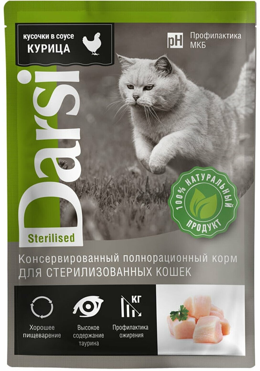 DARSI STERILISED CAT для взрослых кастрированных котов и стерилизованных кошек с курицей в соусе (85 гр х 32 шт)