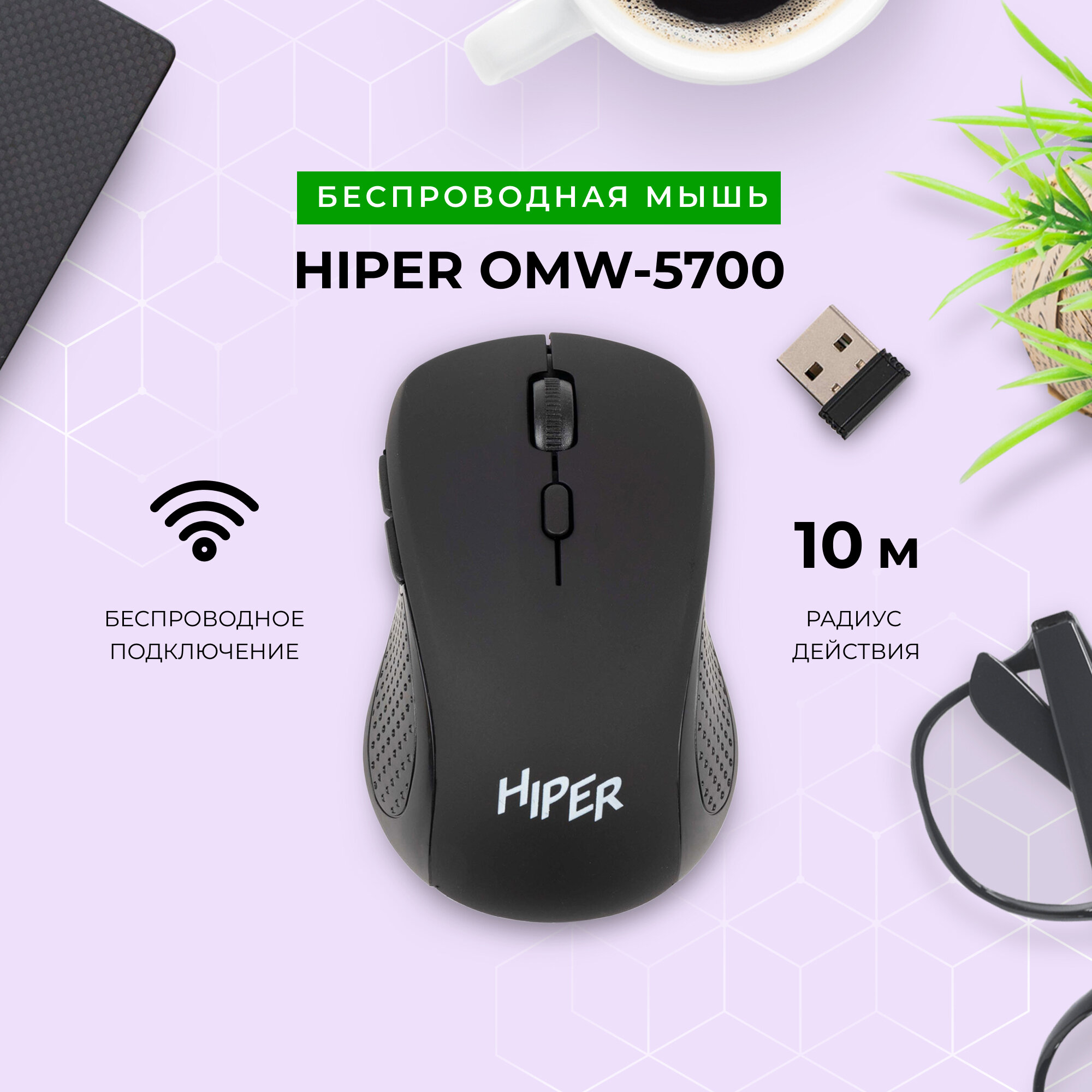 Мышь HIPER беспроводная OMW-5700 ( SoftTouch,1600dpi, черный, USB, 6кнп)