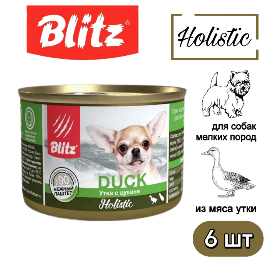 BLITZ SENSITIVE для собак мелких пород паштет с уткой и цукини банка 200 гр 200 гр х 6 шт