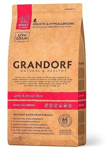 Сухой корм Grandorf для собак средних пород, ягненок/рис, низкозерновой, 12 кг