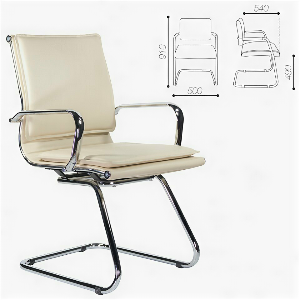 Кресло для приемных и переговорных BRABIX "Kayman CF-102", экокожа, хром, бежевое, 532573 интересное: