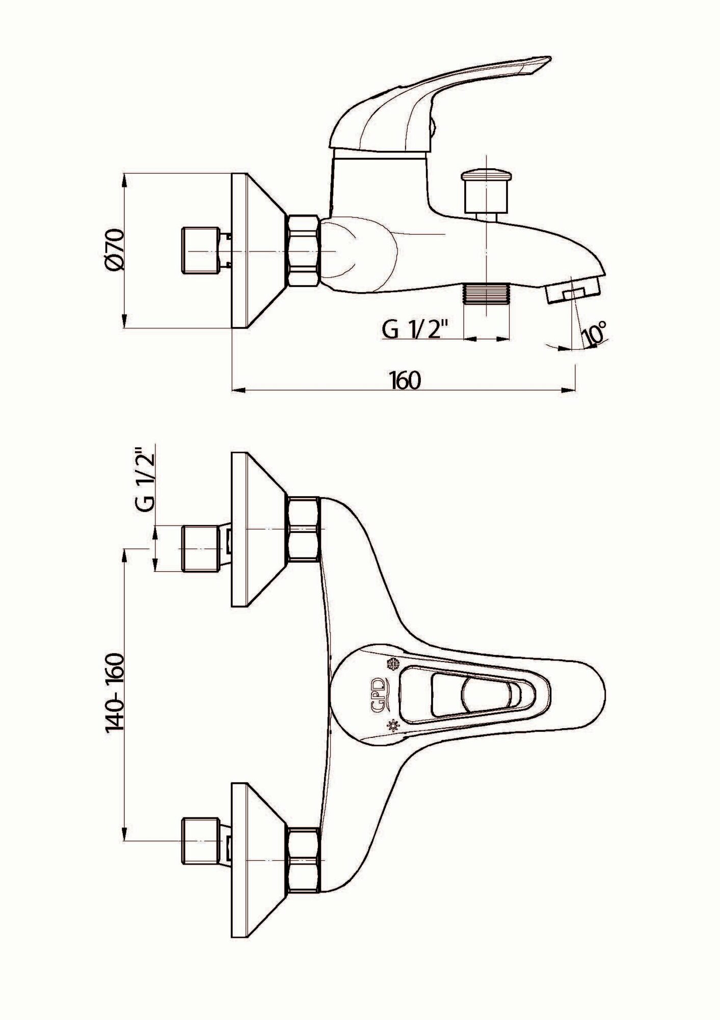GPD Смеситель GPD Adrio MBB120 для ванны с душем