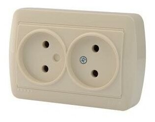 Розетка открытой установки, 2 гнезда, без заземления, пластик, кремовая, закрытый корпус, Lezard, Demet, 711-0300-128