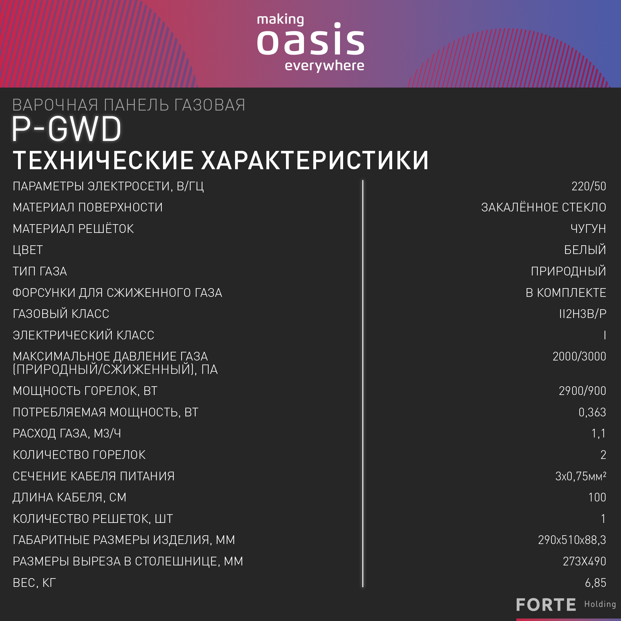 Варочная поверхность Oasis P-GWD (F)
