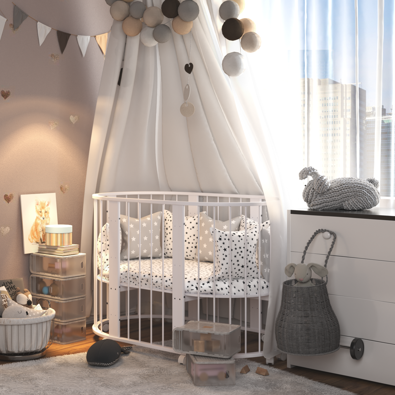 Купить Детская кроватка трансформер круглая/овальная Зайка 7 в 1, белый