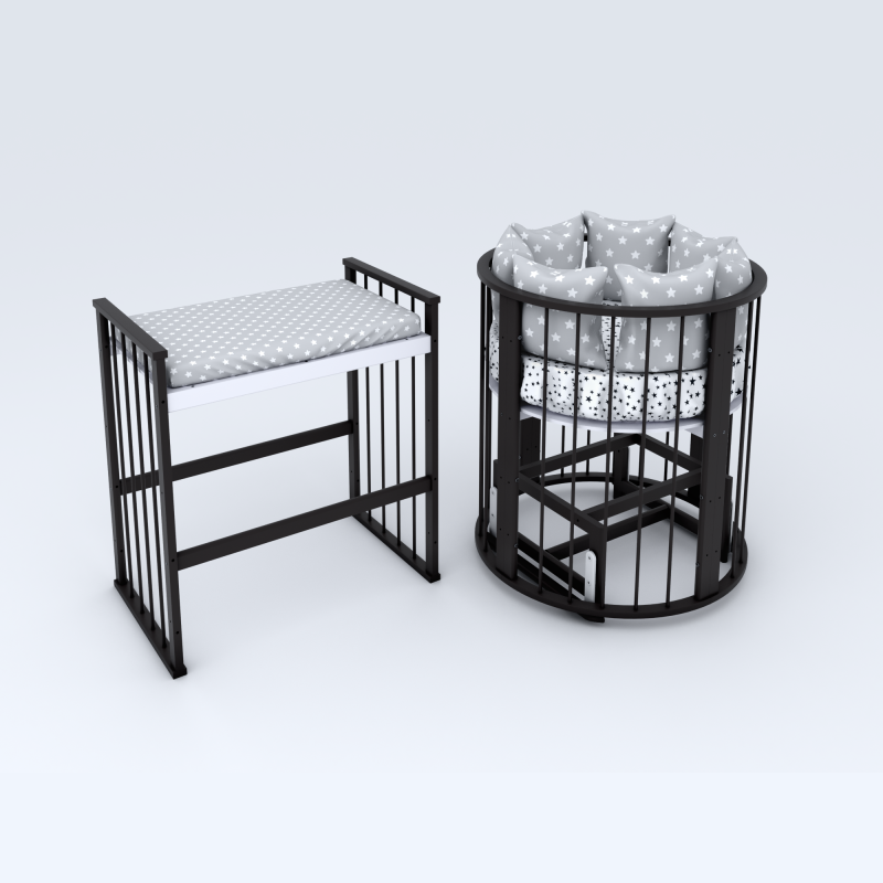 Детская кроватка трансформер круглая/овальная Зайка 7 в 1 с маятником, венге интересное: