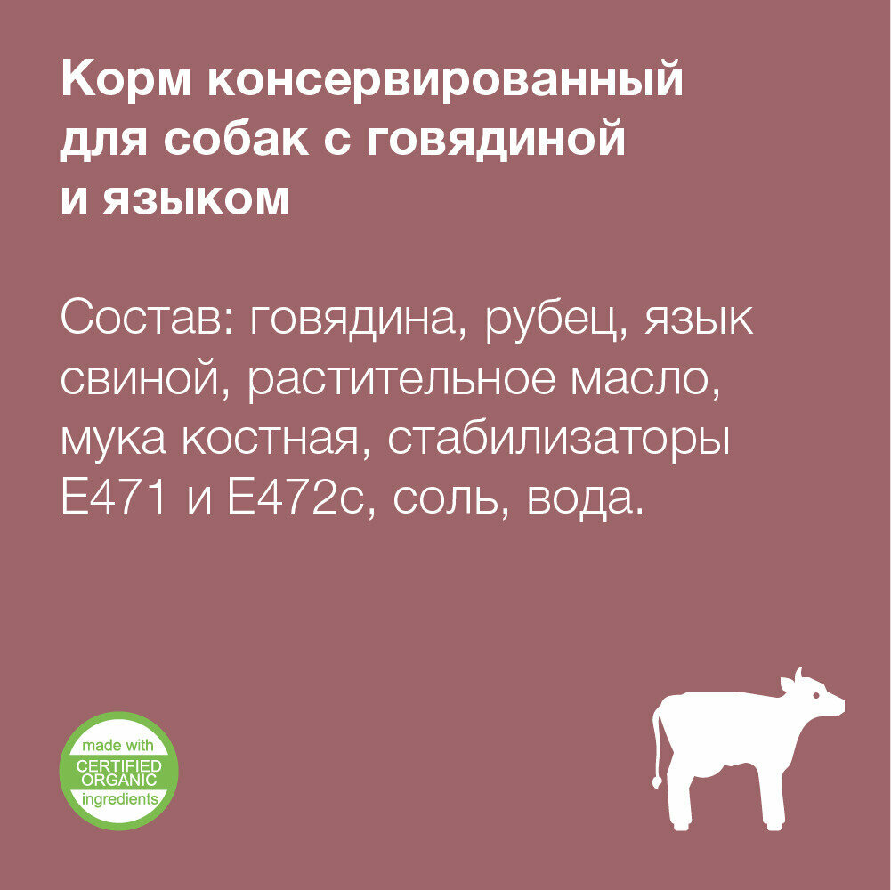 Консервы для собак говядина с языком 0,1 кг х 10 шт.
