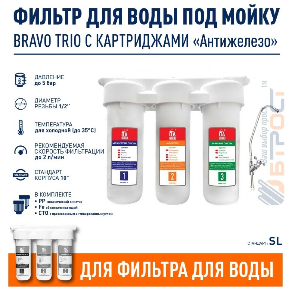 Питьевая система BRAVO TRIO антижелезо (3-х ступенчатый проточный фильтр для очистки воды, под мойку) интересное: