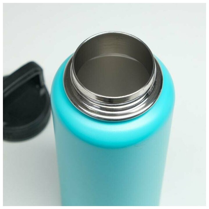 Термос, 1 л, Карабин, сохраняет тепло 24 ч, голубой