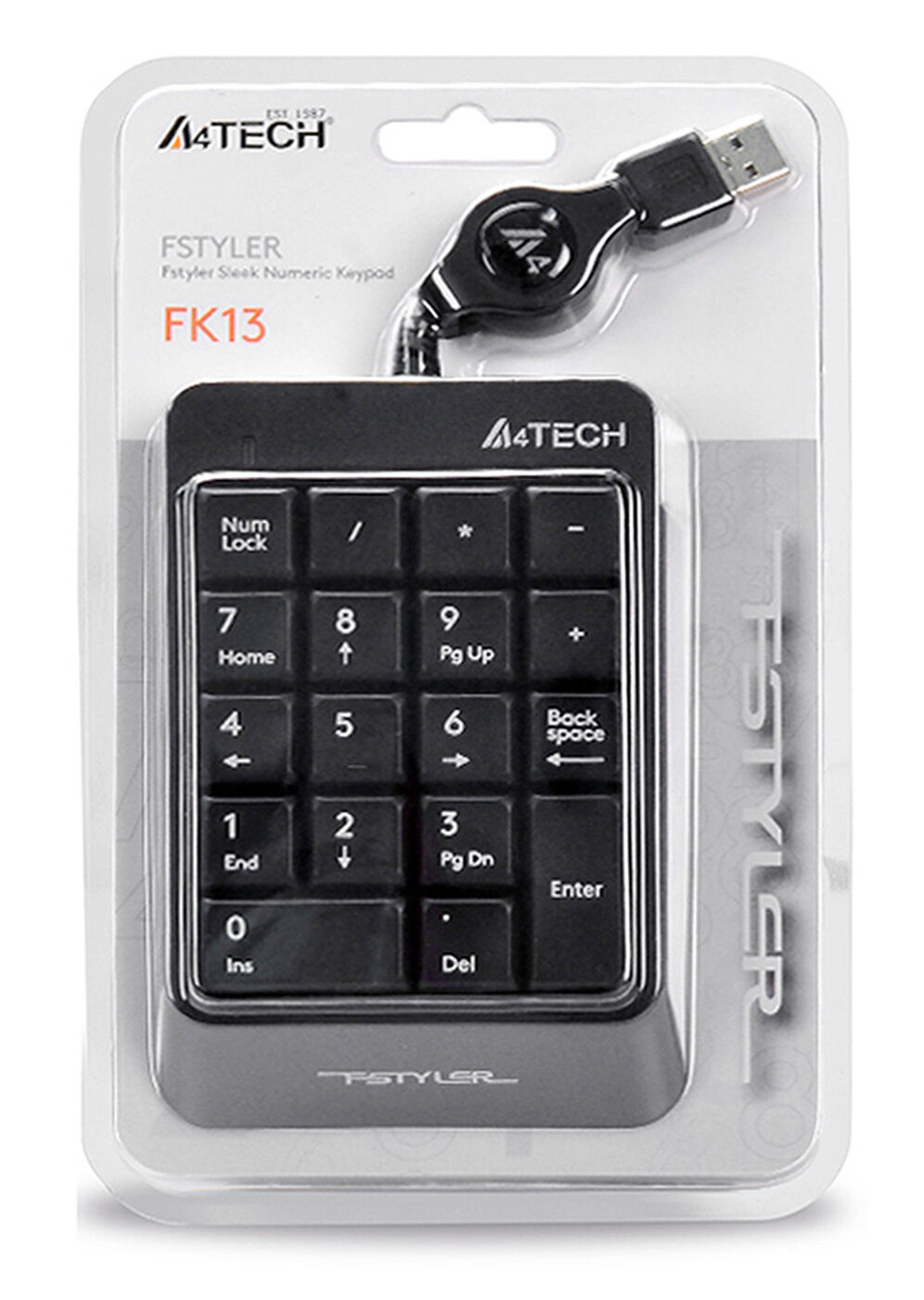 Числовой блок A4TECH Fstyler FK13, USB, без русского алфавита, серый [fk13 usb ( grey)]