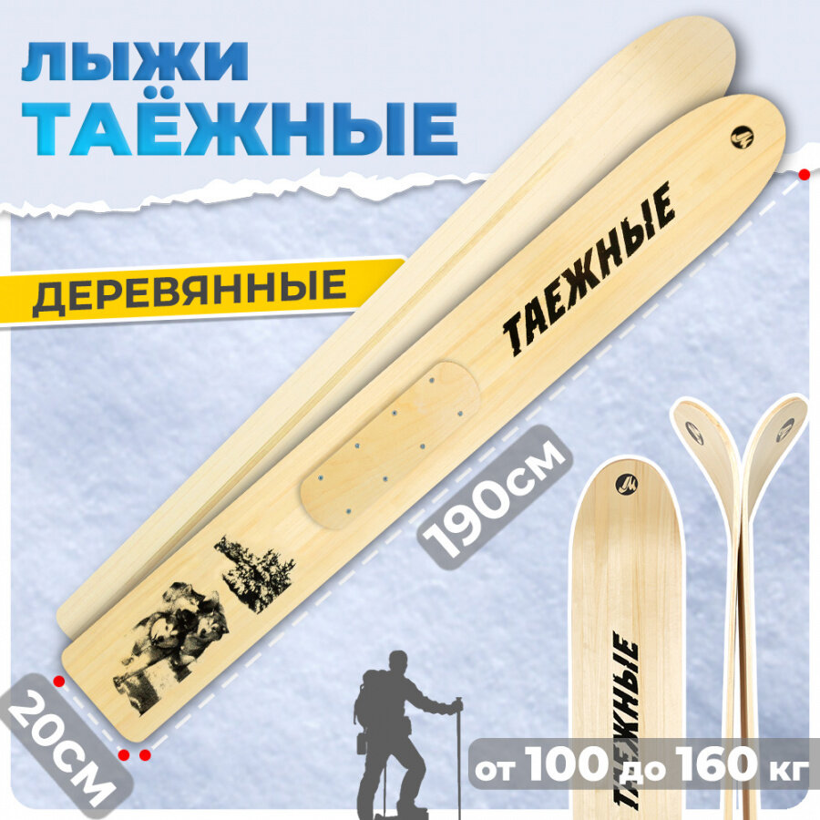Охотничьи лыжи Маяк таежные 190х20 см, дерево + деревянные накладки / Промысловые для охоты, рыбалки, туризма
