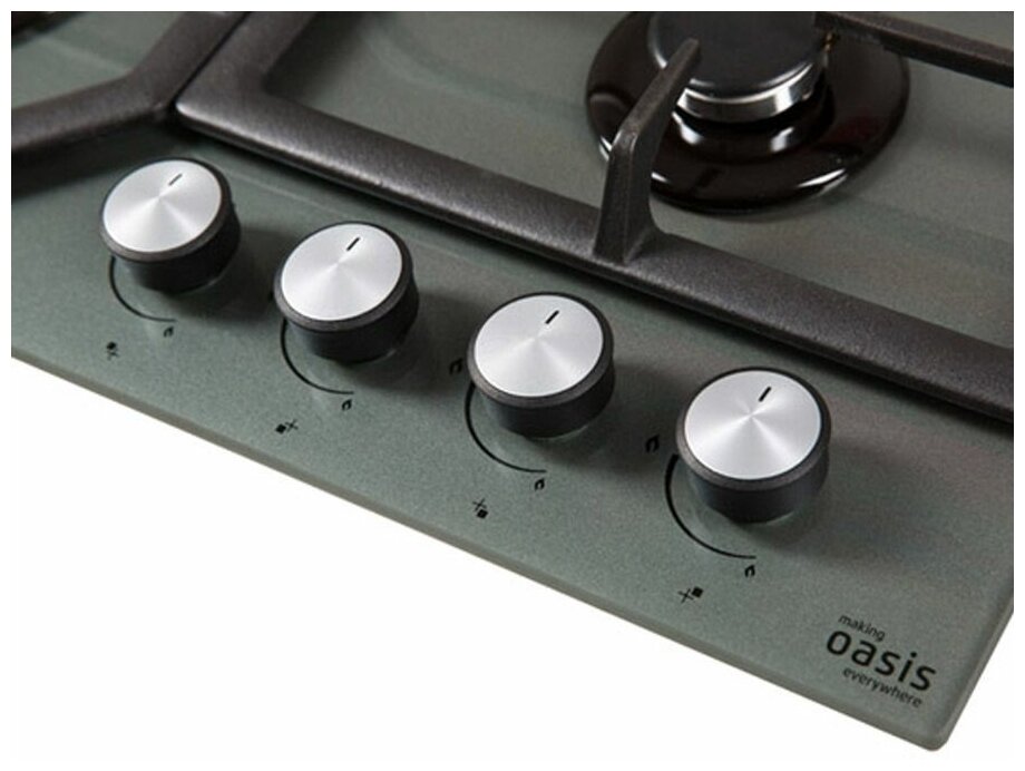 Купить Варочная панель газовая встраиваемая Оазис P-GGT F закаленное стекло серый 97х610х510мм 4 конфорки 2 решетки / газ-контроль / электроподжиг / газовая